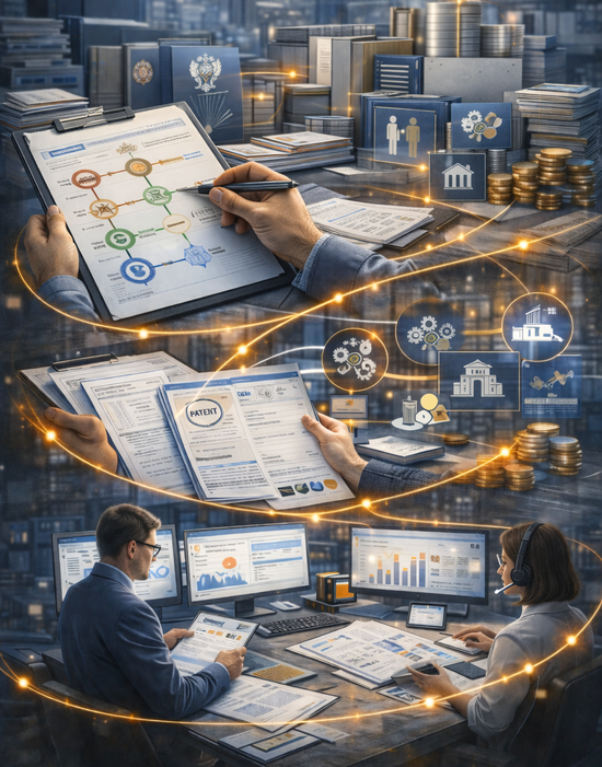 Готовим и оформляем пакет материалов под выбранный трек (патенты / Минцифры / МТК / Сколково / ФСИ / Минпромторг и др.).